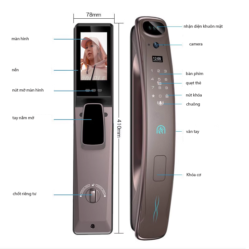 Khóa cửa thông minh nhận dạng khuôn mặt, đóng mở cửa mô tơ tự động