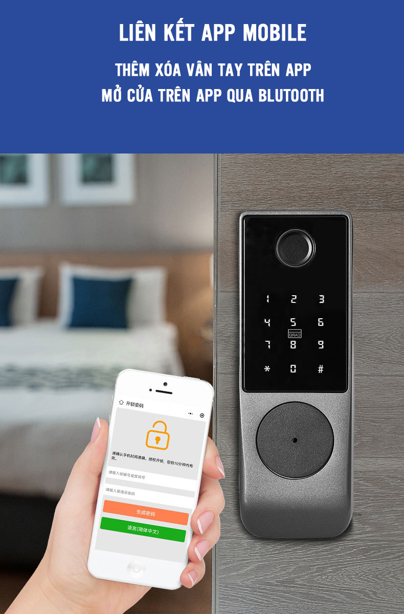 Chức năng đa dạng : vân tay,mã số,thẻ từ,chìa cơ,app điện thoại 2 mặt